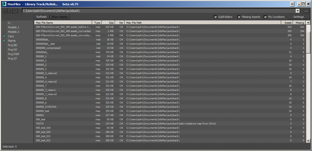 - Find all max, mat files in Selected folder + all subfolders (eg Library folder)