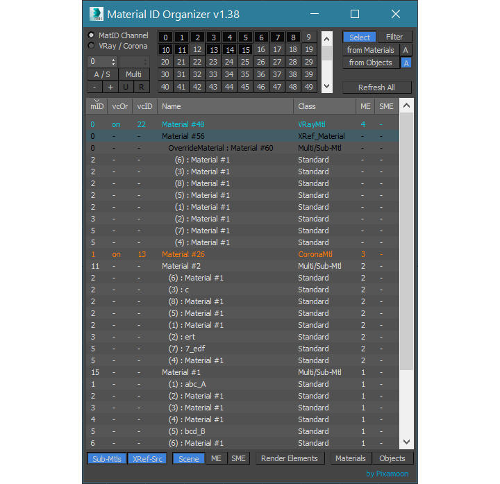 - Highlight Buttons of used MatIDs Vray Effect IDs