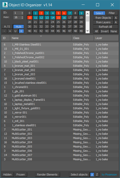 Object ID Organizer is similar tool to my previous Material ID Organizer.